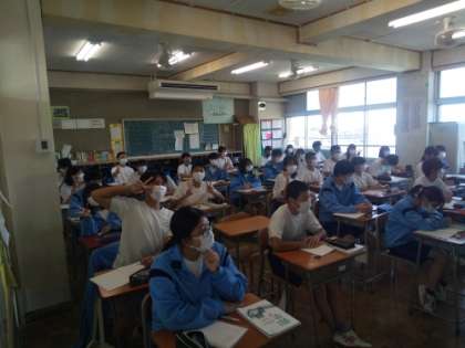 黒板に書かれた問題の「範例」をもとに 皆で意見を出し合っていました。
