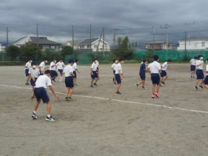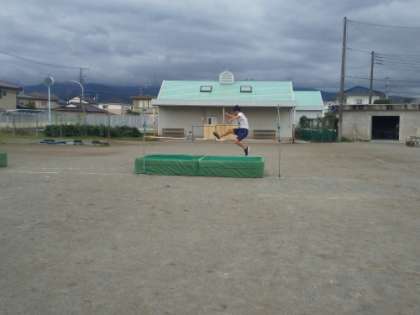 男子は 校庭で 短距離走と走り高跳びに分かれて取り組んでいました。