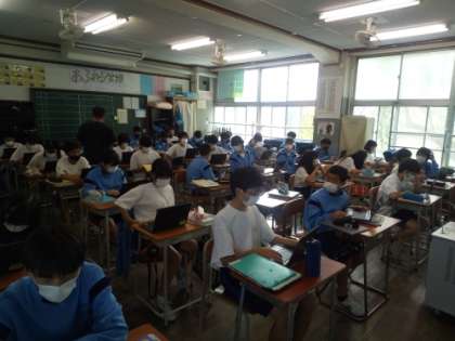 クロームブックを使い 英語で クイズの 問いと答えを 自分で作る学習をしていました。
