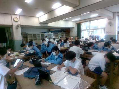 クロームブックを使い 描きたいものを 調べている人もいました。