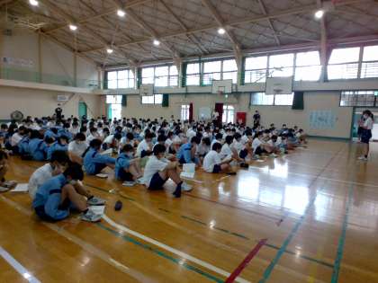 しおりの内容に沿って、実行委員の生徒が遠足のきまりや各係の仕事内容などについて説明してくれました。