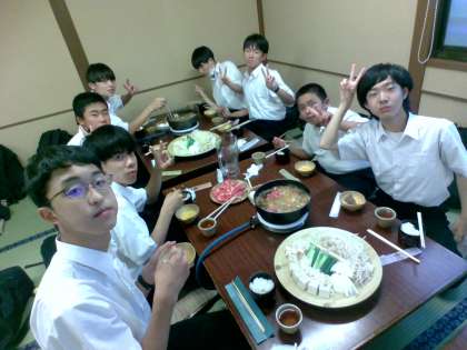 生徒のエネルギーも あり 汗をかいて 食べていました。