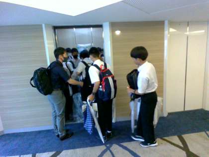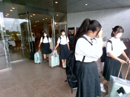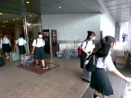 朝食前に 家におくる 荷物を トラックに積み込みます。