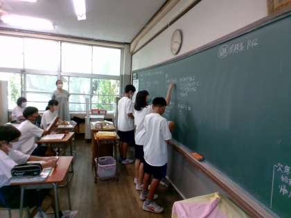 一次式の計算問題を解いていました。 代表の生徒が前に出て