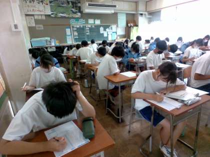 単元テストの返却と スポーツテストの記録の確認をしていました。