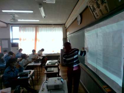 二年一組は 英語の授業でした。