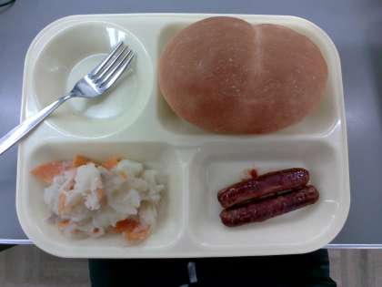 牛乳、ソフトフランスパン、焼きウインナー、じゃがいものホクホク炒めでした。