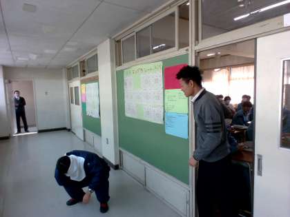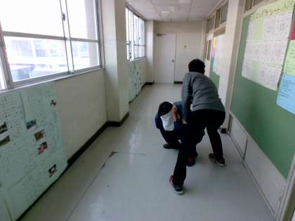 突然 校内に不審者が 侵入したときの訓練でした。