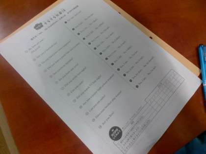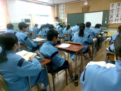隣の席の子とお互いに英語を使って会話をしてました。楽しそうに活動していました。