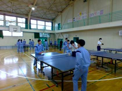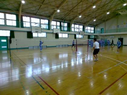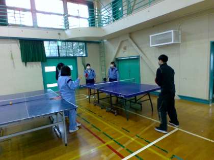 体育館で バドミントンと 卓球をしていました。