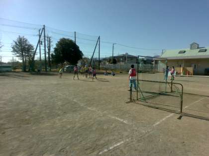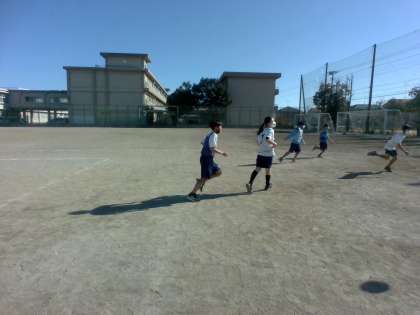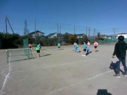 校庭で ハンドボールを行っていました。