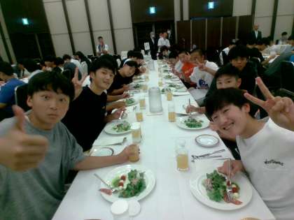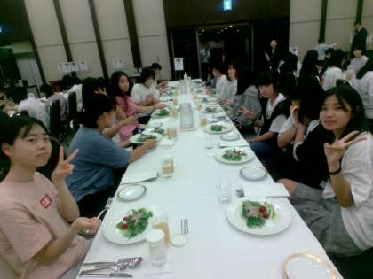 オレンジジュースで 乾杯をしているクラスも有りました。