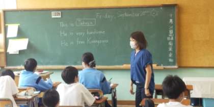 1年4組は 英語の授業でした。 友達を紹介する文章を英語でワークシートに