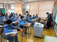 山根さんの話を、2年生は各教室でオンラインで見ました。最後は3年生の代表者から、...