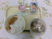 今日の給食は、牛乳、ご飯、回鍋肉、いかのみりん焼きでした。回鍋肉にしっかりとした...