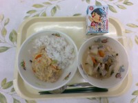 今日の給食は、牛乳、ご飯、里芋と生揚げのそぼろ煮、けんちん汁でした。今日は寒かっ...