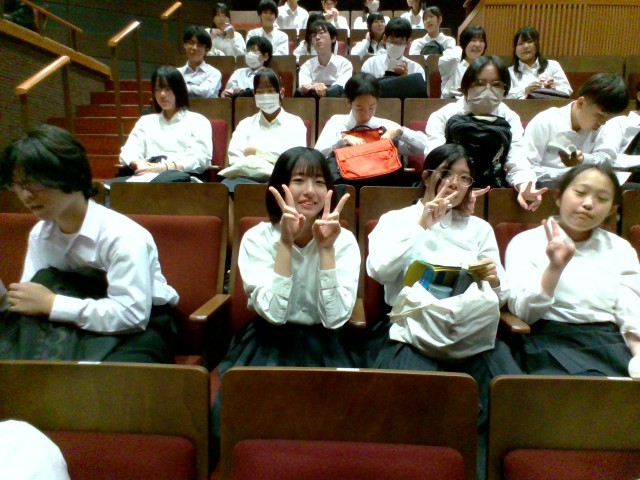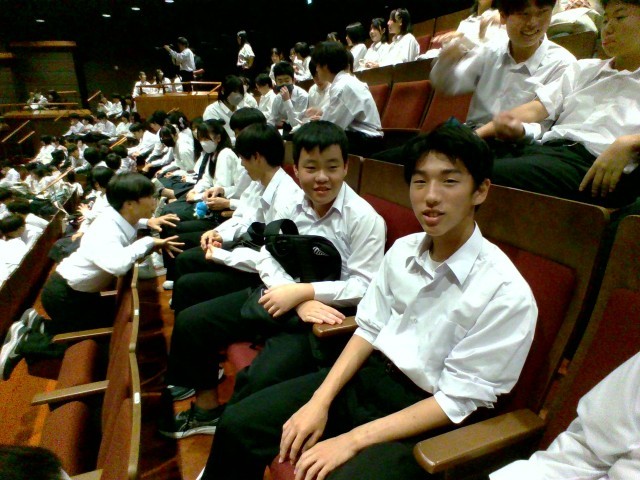 会場に到着しました。始まる前の生徒たちの様子です。良い笑顔ですね。