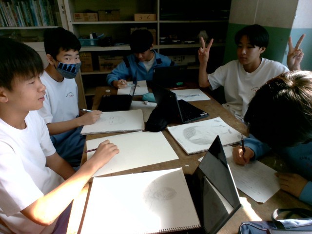 3年生の美術では自画像制作に取り組んでいます。みんな真摯に取り組んでいます。