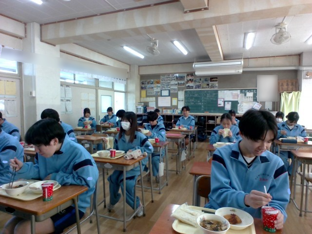 給食の様子を撮影しました。おかずがかなり余ったので、育ち盛りの中学生はおかわりを...