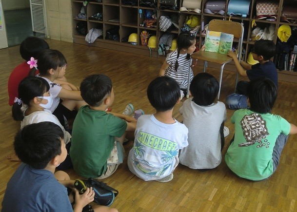 朝の読書タイムでは、係の子が本の読み聞かせを行う日があります。