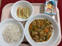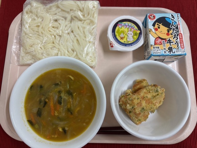 牛乳 カレーうどん ちくわの磯辺揚げ お月見ゼリー