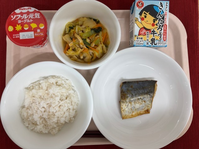 牛乳 麦ごはん 鰆のカレーしょうゆ焼き 白菜の煮浸し