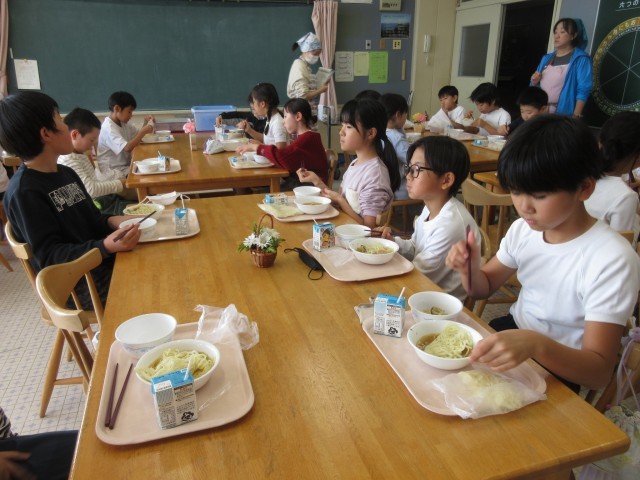 今日は3・4年生がランチルームで一緒に給食時間を過ごしました。いつもと違う場所での準備に少し時間がかかりましたが、同じテーブルで食べる子どもたちは楽しそうな雰囲気で食事をしていました。今後も異学年の交流が続きますので楽しみにしてください。