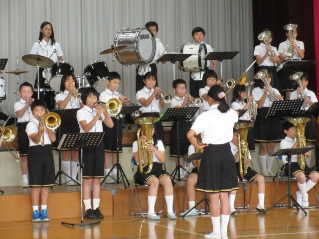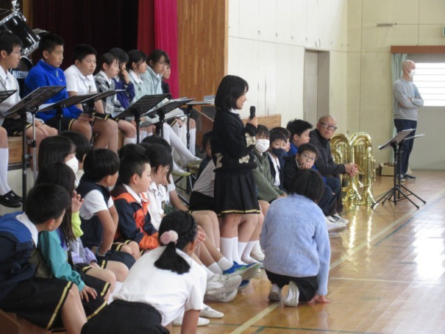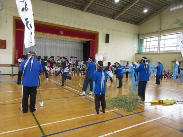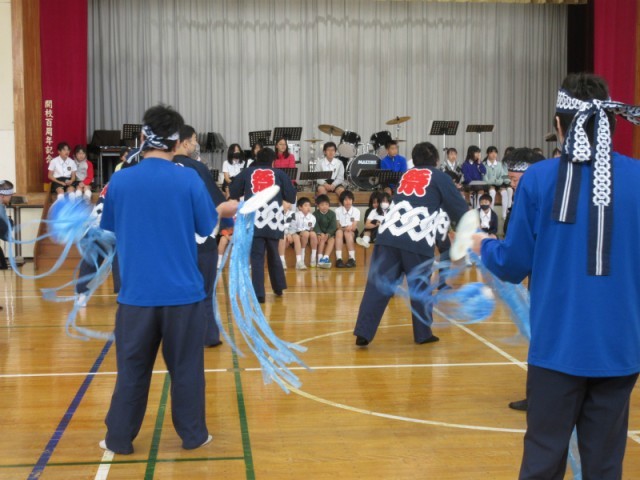 片浦小学校からは、4~6年生の金管バンド演奏、1~3年生のえっさホイ踊りを発表しました。しおんの方々からはソーラン節を発表していただきました。お互いに演奏の間に手拍子を入れたり、自席で手を動かして一緒に踊ったり微笑ましい交流となりました。