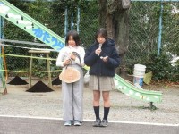 学校坂道には色とりどりの葉が舞い落ちてきます。