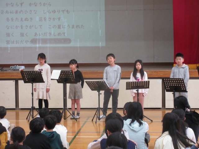 他の学年から「きれいにハモっていたね」「曲がかっこよかった」等の感想がおくられました。