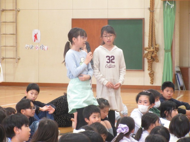 延期になっていた4年生の発表朝会を行うことが出来ました。
