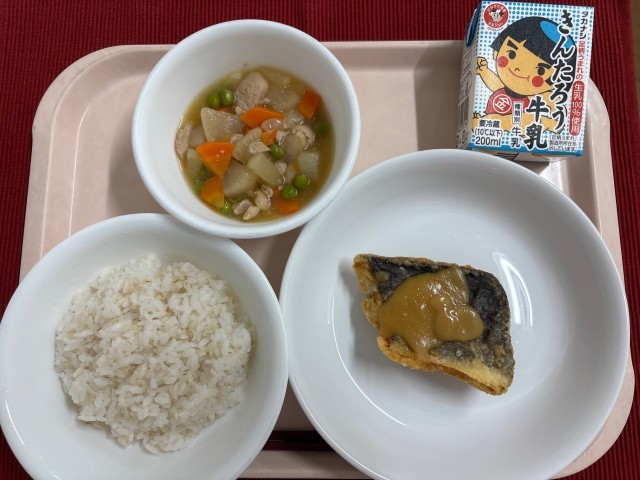 牛乳 麦ごはん 鰆のゆずみそ焼き 鶏肉と大根の煮物