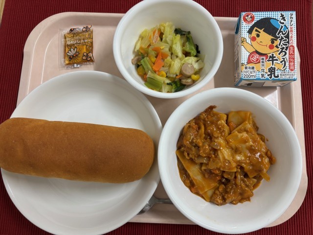 牛乳 コッペパン ラザニア カラフルソテー はちみつ