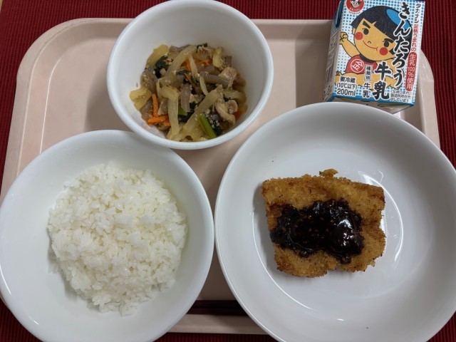 味噌カツは愛知県 や三重県 、岐阜県などにお店もたくさんあり、よく食べられています。味噌だれの味で、子どもたちはごはんが進む様子でした。きんぴらに使っている大根は冬に甘みがまして、おいしい野菜です。今日は、かみごたえのあるこんだてです。よくかんでたべると、むしばのよぼうになったり、あたまのはたらきがよくなったりと良いことがたくさんあります。