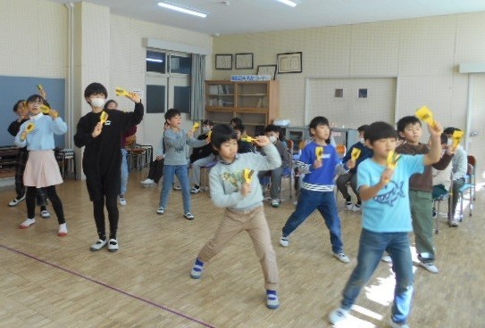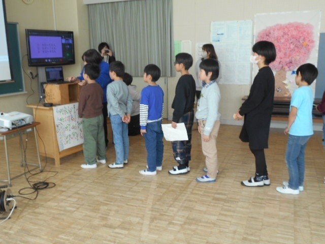 片浦小3年生は、片浦小クイズと「ODAWARAえっさホイおどり」を行いました。