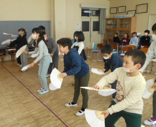 11月に全校で福踊に取り組んだことをきっかけに、4年生は地域の方に福踊についての話を聞きに行きました。踊る人が少なくなっていること、それでも続いていってほしいという地域の願いについても伝えることができました。