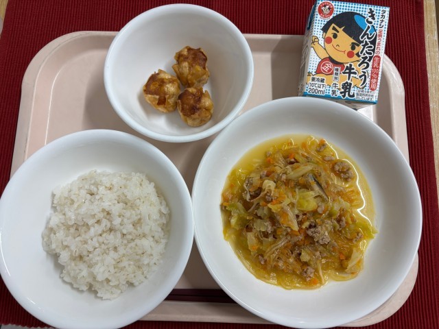 牛乳 麦ごはん マーボー春雨 コーンしゅうまい