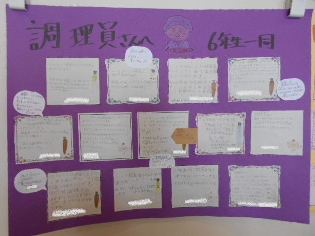 12月に給食週間の取り組みを行い、その一つとして子どもたちが調理員さんへ手紙を書き、