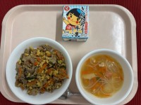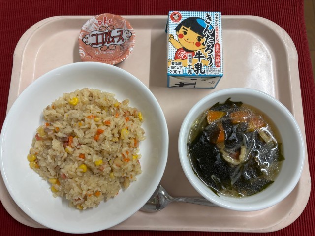 牛乳 炊き込みチャーハン わかめスープ ココアムース