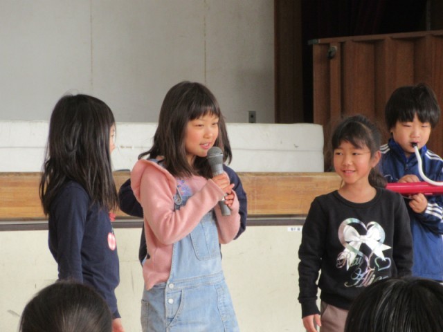 1年生の発表朝会を行いました。雪が降って登校が遅れるなど、延期を重ねてしまいましたが、やっと発表に至りました。