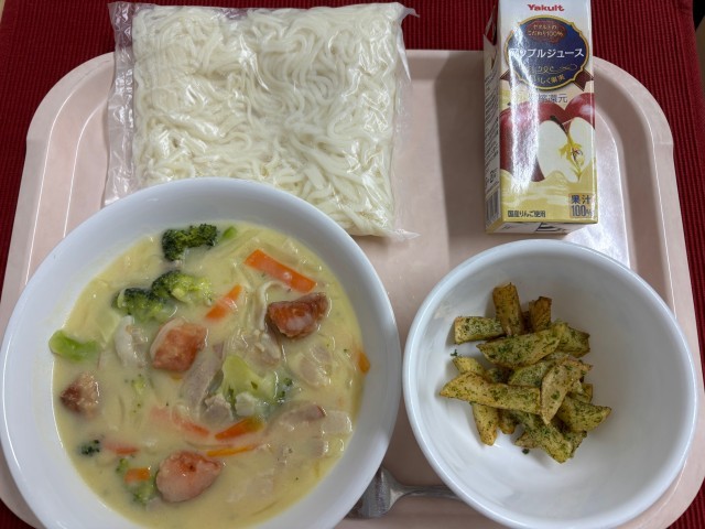 アップルジュース ソフトめん 鮭のクリームソース のり塩ポテト