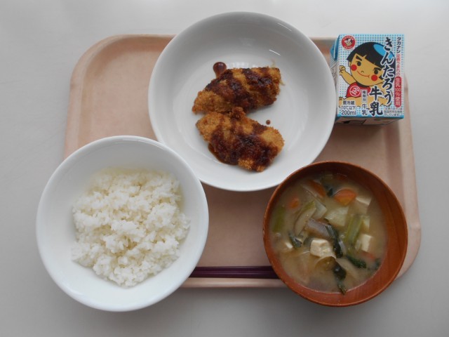 牛乳 ごはん あじフライ みそけんちん汁