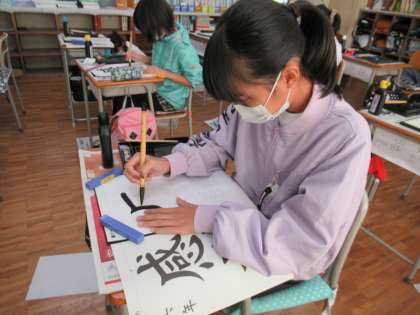 6年生は、11月5日(金)の書写・毛筆の授業で、これまでの学習のまとめとして「感謝」という文字を書きました。今回は、初めてでしたので、下敷きを使って書きました。どの子も、とても上手に書くことができて素晴らしかったです。