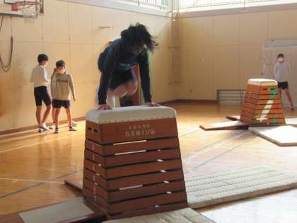 5・6年生は、2月2日(水)の体育の授業から、「とび箱運動」の学習に入りました。今年度に入ってから初めての活動となりましたので、子どもたちは、「ならし運転」ということで、昨年度に学習したことを思い出しながら体を動かしてました。担当教師の指導で、十分に安全に気をつけて活動することができました。