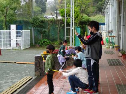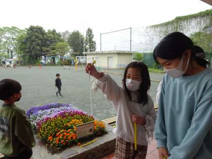 4年生は理科の学習で、気温を測っていました。11時頃の気温は、測る人によって若干の違いがありましたが、17〜19度ぐらいだったようです。