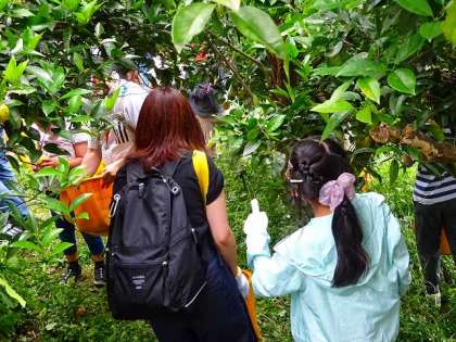 学校公開日にあわせて、3・4年生は親子ふれあい活動として、農園のバレンシアオレンジを収穫しました。これは例年行っていた行事ですが、コロナ禍でここ2年は実施しておりませんでしたので、3年ぶりとなります。