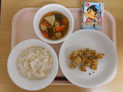 今日で歯と口の健康週間はおわりです。今週はかみごたえのある献立をとりいれました。これからも歯磨きを丁寧に行いよくかんで食べ、お口の中をきれいにしてむし歯を予防しましょう。