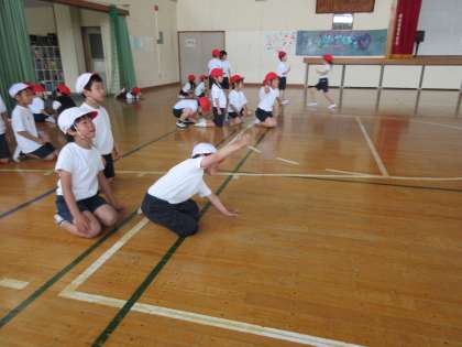 今日は1・2年生が合同で「かけっこあそび」を行っていました。