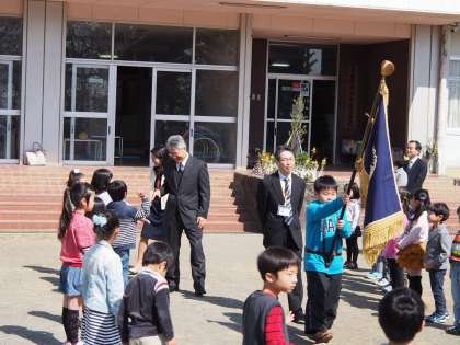 4月8日(火)に離任式がありました。離任された先生方には、学年を越えて様々な面でお世話になった子どもたち。お別れの手紙や金管での見送りに離任された先生方は名残惜しい様子でした。1年生も参加しましたが、がんばってお話を聞くことができました。子どもたち一人ひとりが思い思いの表現でお別れができたようです。