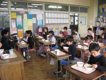 小田原産・神奈川産の食材を多く使った給食の取材に、J:COMの方が来られました。いつもたくさん給食を食べている、元気な2年生の子どもたちがインタビューを受けました。どの子もしっかりと答えていて、すごいなと思いました。